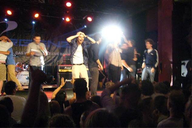 Im Emergenza Deutschland-Finale spielten sechs Bands aus ganz Deutschland, wobei dann bei der Siegerehrung am Samstag Nacht Freude und Enttäuschung ganz eng beisammen lagen (siehe Foto oben).